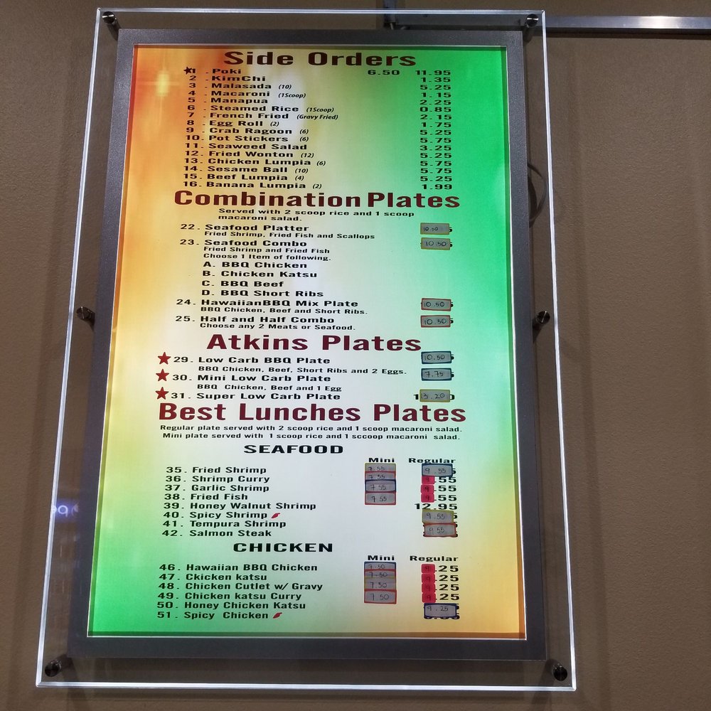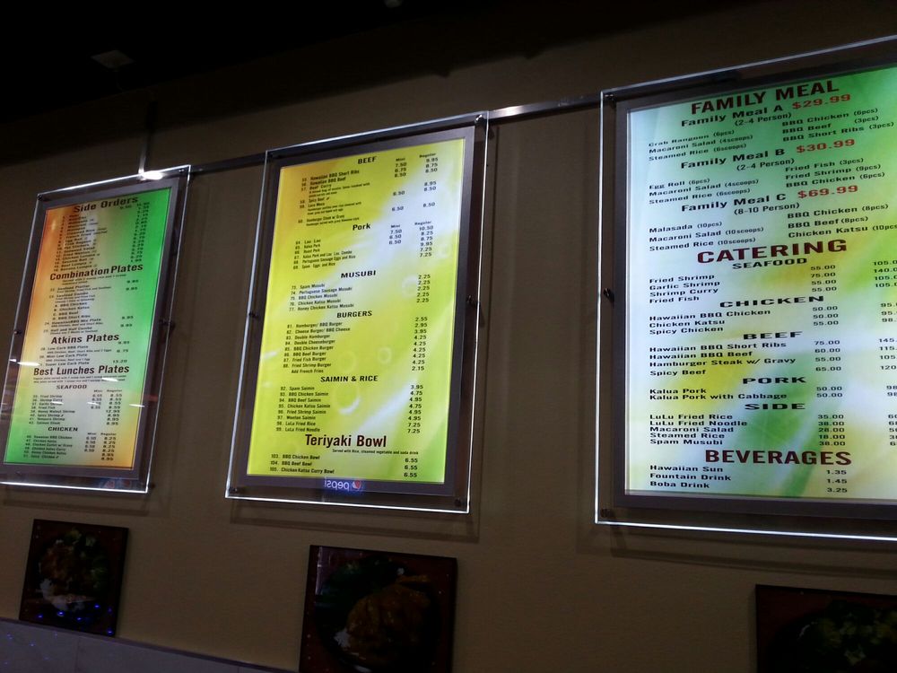 Welcome to LULU Hawaiian BBQ 2, a vibrant destination for seafood lovers and Hawaiian cuisine enthusiasts located at 7120 North Durango Dr, Las Vegas. The menu offers a delightful array of dishes that promise generous portions and authentic flavors. Dive into their Teriyaki Bowls featuring Kalua Pork, BBQ Beef, and BBQ Chicken, each accompanied by rice and soda. For a heartier experience, explore the Chicken Plates and Combination Plates, perfect for sharing or indulging solo.